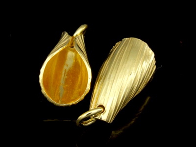 KG-422 24K gold vermeil Karen hill tribe handmade silver 2 scratch curve petal charm