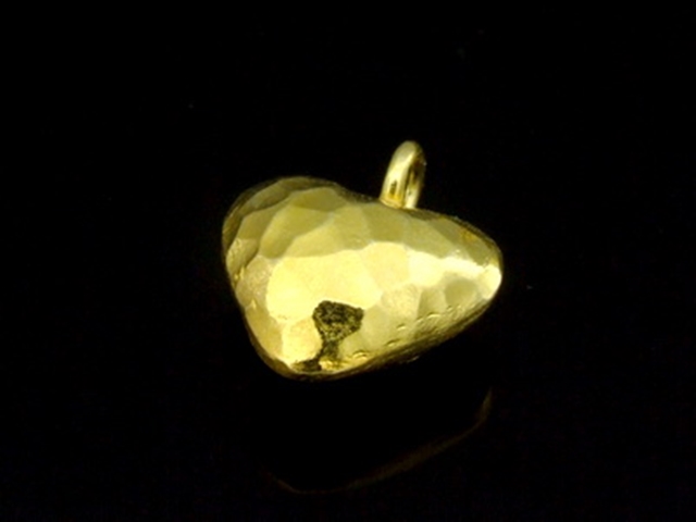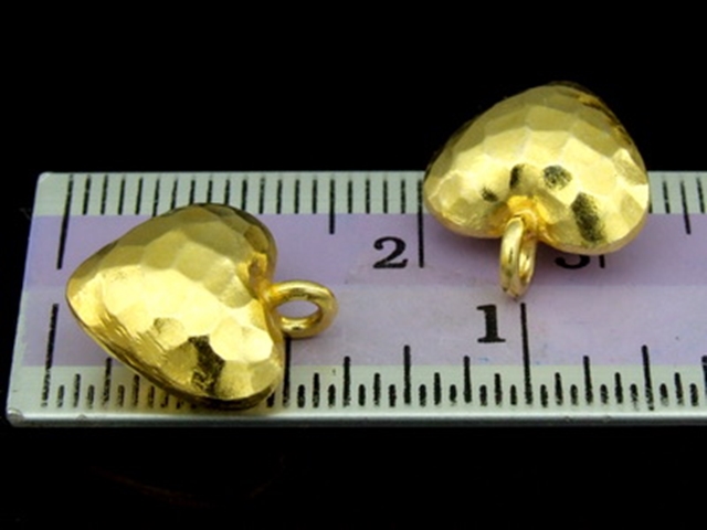 KG-450 24K gold vermeil Karen hill tribe handmade silver 2 hammer puffy heart shape charm