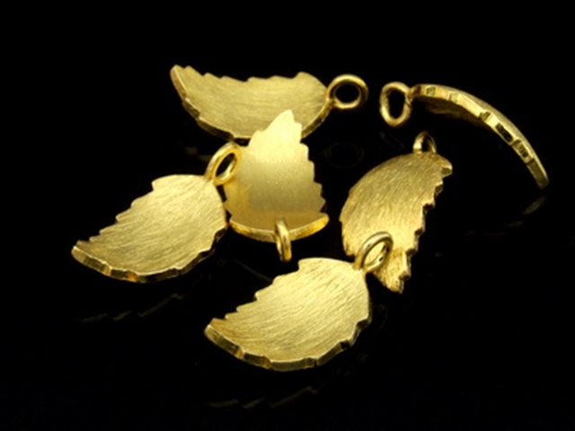 KG-461 24K gold vermeil Karen hill tribe handmade silver 2 brush curved leaf charm