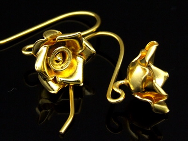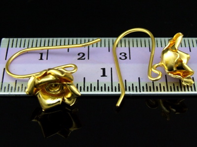 KG-494 Thai karen hill tribes handmade 24K gold vermeil over silver pair wild flower rose earring