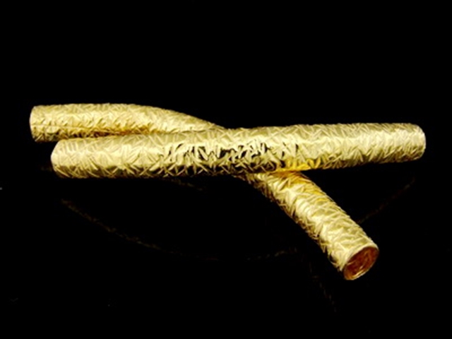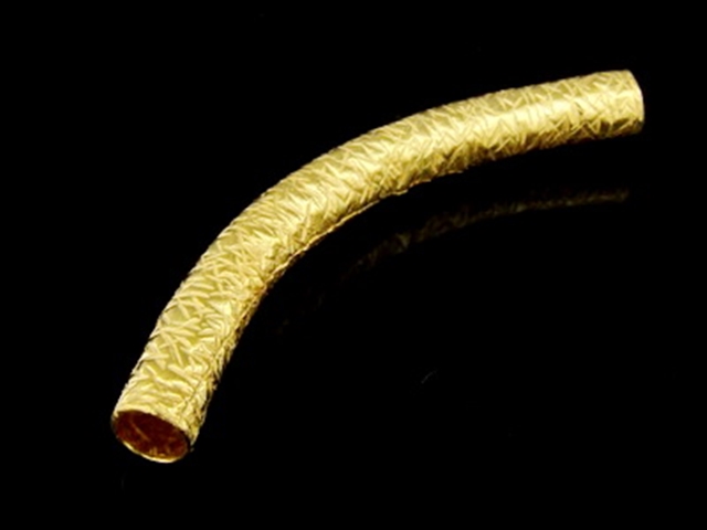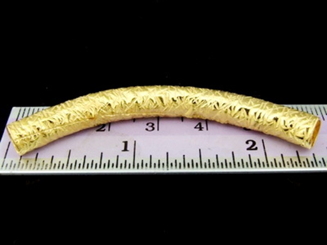 KG-506 24K gold vermeil Karen hill tribe handmade silver 1 scratch hammered curve tube bead