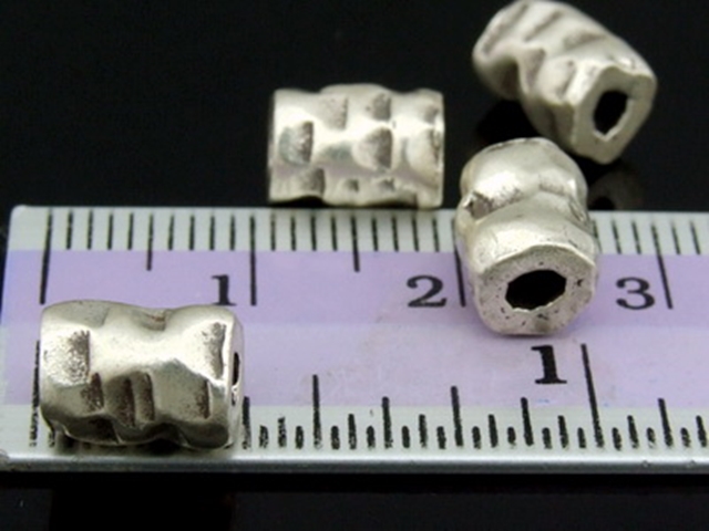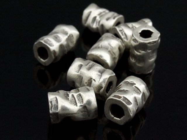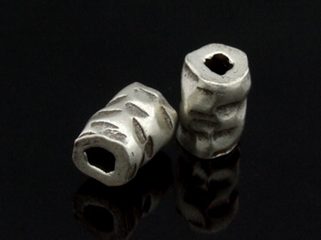 KK-031 Thai karen hill tribe handmade silver 3 hammered tube bead