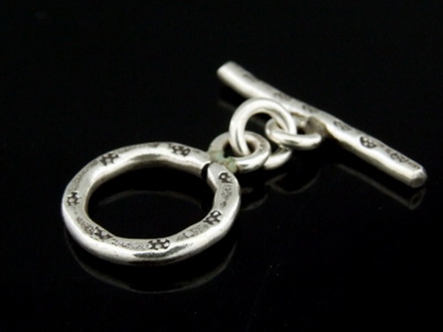 KR-003 Thai karen hill tribe handmade silver 2 daisy print toggle