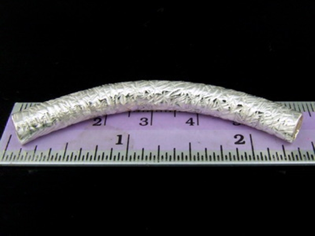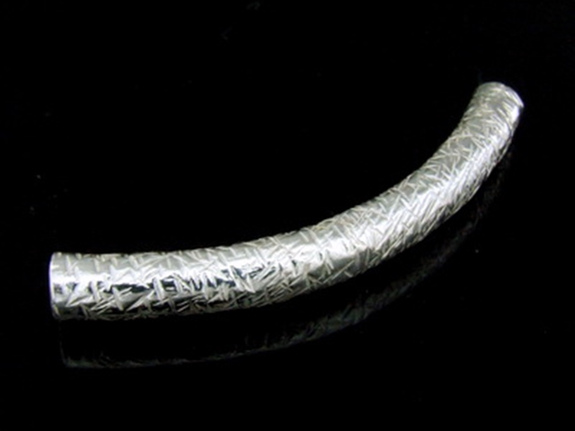 KS-010 Thai karen hill tribe handmade silver 1 scratch hammered curved tube bead