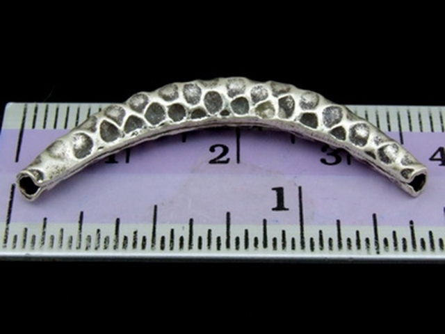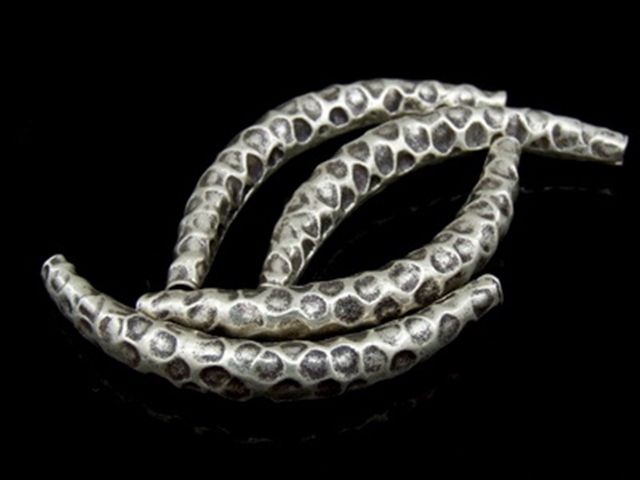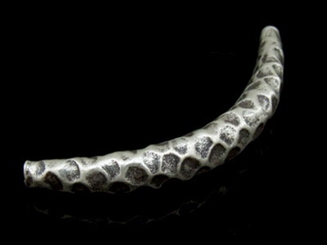 KS-026 Thai karen hill tribe handmade silver 1 hammered curved tube bead