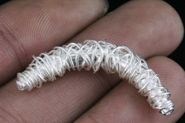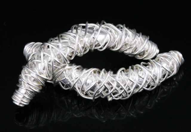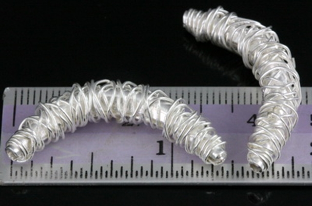 KS-033 Thai karen hill tribe handmade silver 1 swirl wire wrap curved tube bead