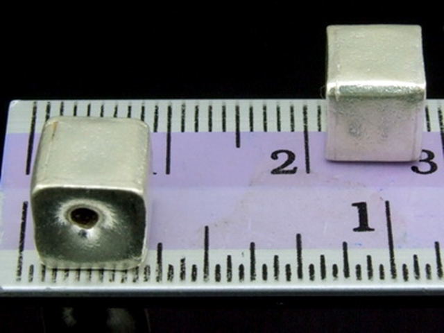 KV-022 Thai karen hill tribe handmade silver 2 plain cube bead