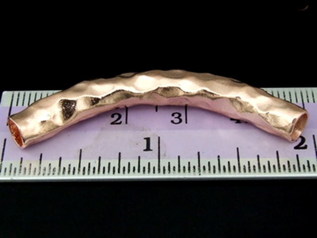 KZ-079 24K rose gold vermeil thai karen hill tribe handmade silver 1 hammered curved tube bead
