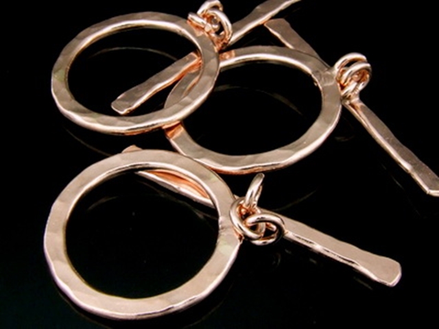 KZ-091 24K rose gold vermeil thai karen hill tribe handmade silver 1 hammered round toggle