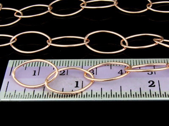 KZ-185 24K rose gold vermeil thai karen hill tribe handmade silver plain oval link chain 24 inch