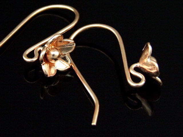 KZ-195 Thai karen hill tribes handmade 24K rose gold vermeil over silver pair wild flower earring