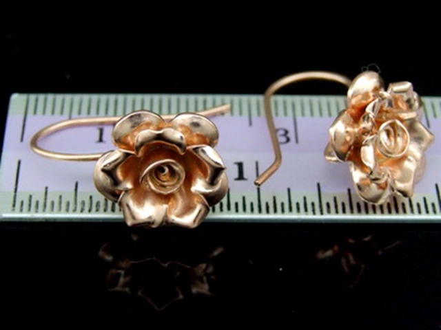 KZ-200 Thai karen hill tribes handmade 24K rose gold vermeil over silver pair rose flower earring