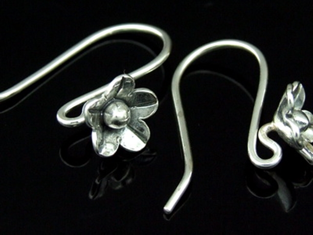 6KH-013 Thai karen hill tribe hanamade silver black & black piar wild flower earring