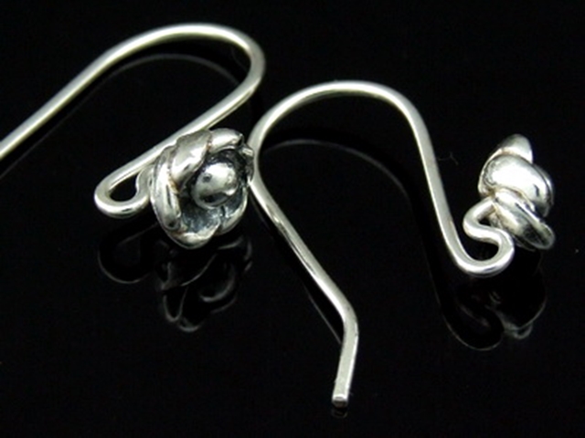 6KH-010 Thai karen hill tribe hanamade silver black & black piar wild flower earring