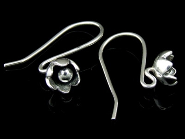 6KH-011 Thai karen hill tribe hanamade silver black & black piar wild flower earring