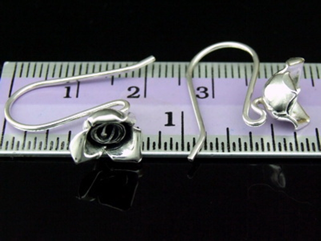 6KH-016 Thai karen hill tribe hanamade silver black & black piar rose flower earring