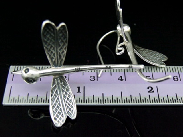 6KH-021 Thai karen hill tribe hanamade silver black & black large pair dragonfly earring