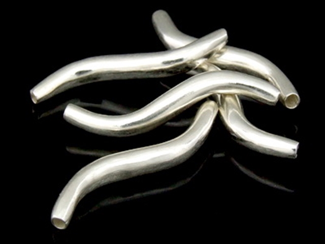 KS-056 Thai karen hill tribe hanamade silver 2 plain curve tube bead