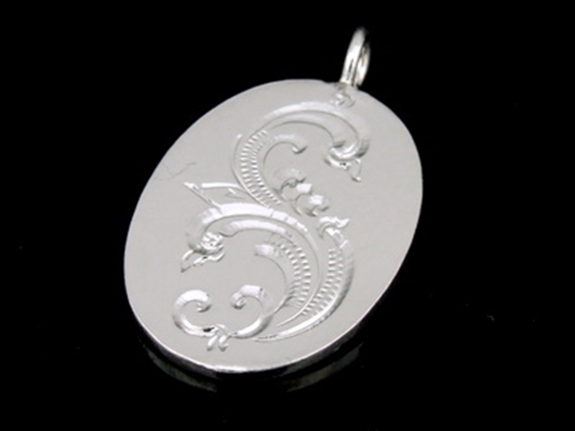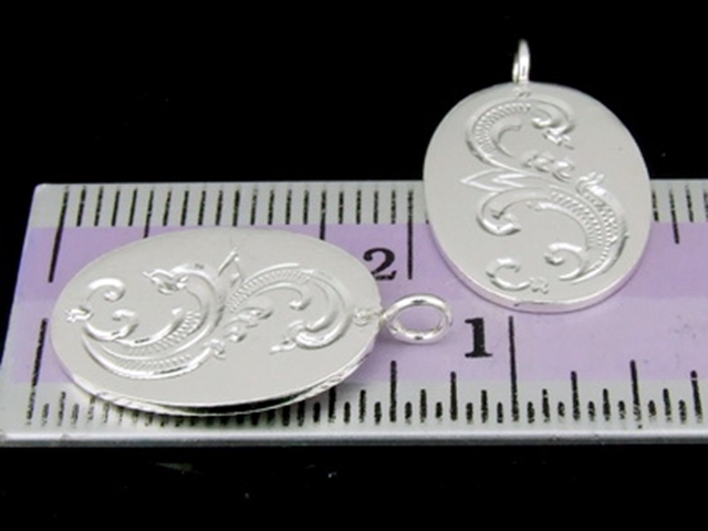 3KH-080 Thai karen hill tribes handmade silver 2 thai style engrved oval disc charm