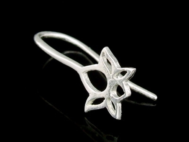 KA-118 Thai karen hill tribes handmade over silver pair lotus diecut earring hook