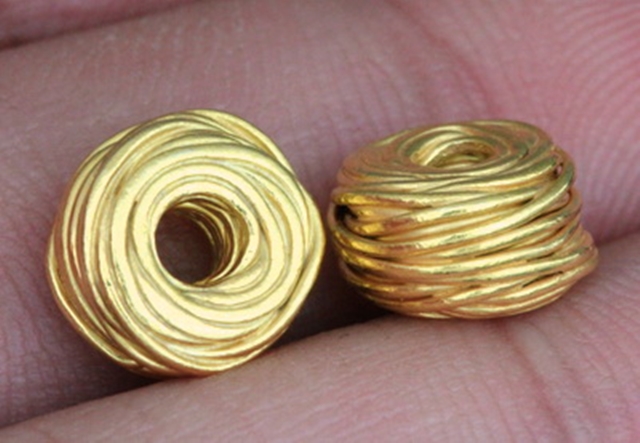KG-212 24K gold vermeil Karen hill tribe handmade silver 3 wire wrap bead
