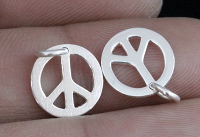 7KH-084 Thai karen hill tribe hanamade silver 2 matt peace sign charm 10.0 mm