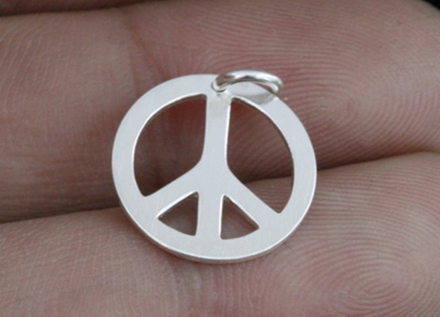 7KH-085 Thai karen hill tribe hanamade silver 2 matt peace sign charm 14.0 mm