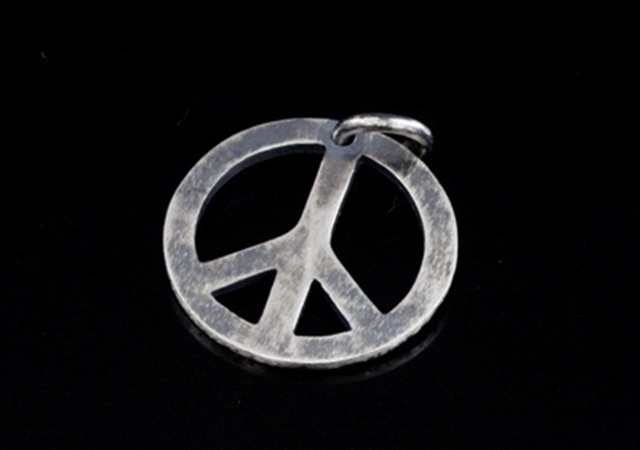 8KH-087 Thai karen hill tribe hanamade silver black & white 2 peace sign charm 14.0mm.