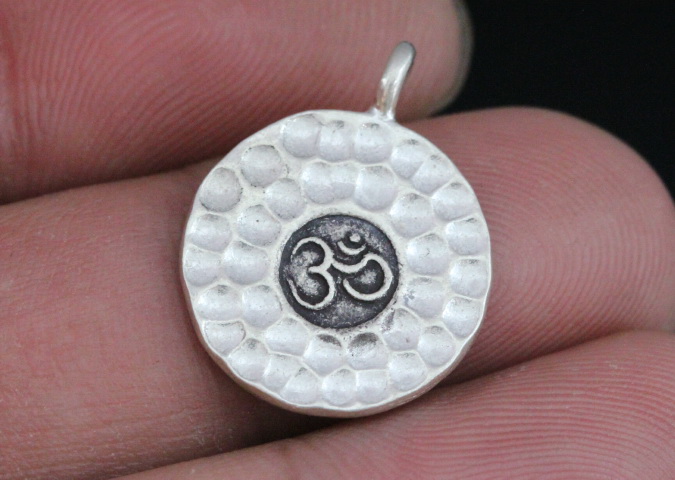 1KH-012 Thai karen hill tribe handmade silver 3 Om sign round disc charm