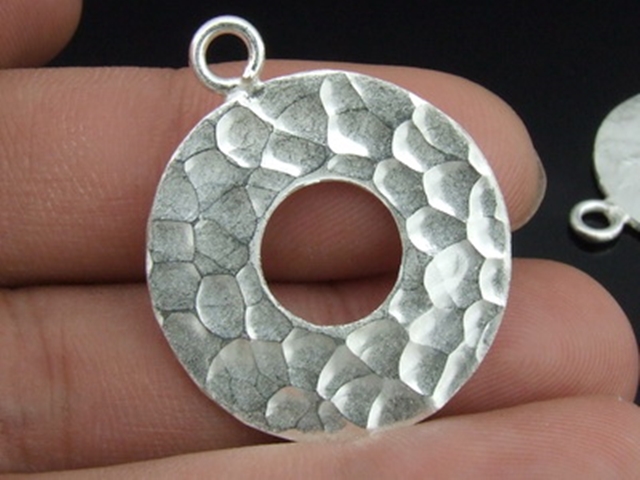 3KH-069 Thai karen hill tribe handmade silver 1 hammered round disc charm