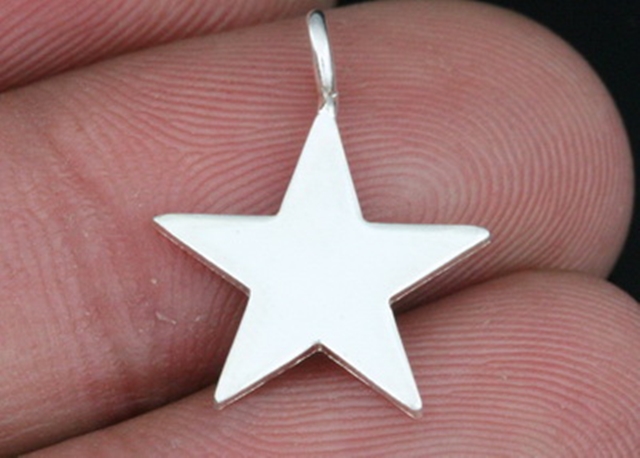 3KH-126 Thai karen hill tribe silver 4 mediuml die cut star charm 14.0 mm