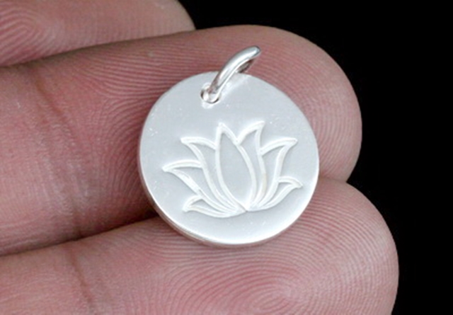 7Kh-089 Thai karen hill tribe silver 4 medium printed lotus charm