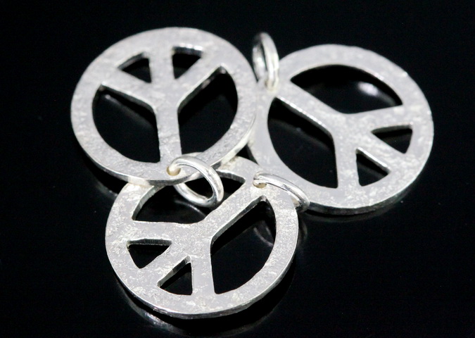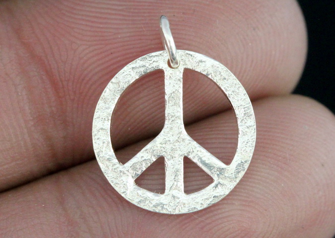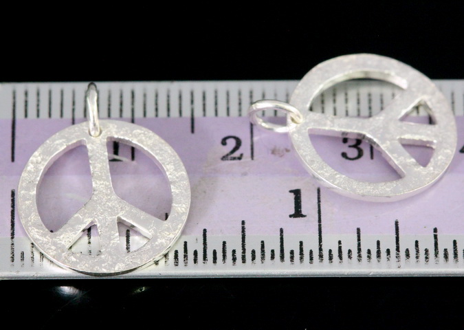 7KH-100 Thai karen hill silver 2 rough stone texture peace sign charm