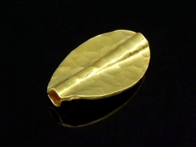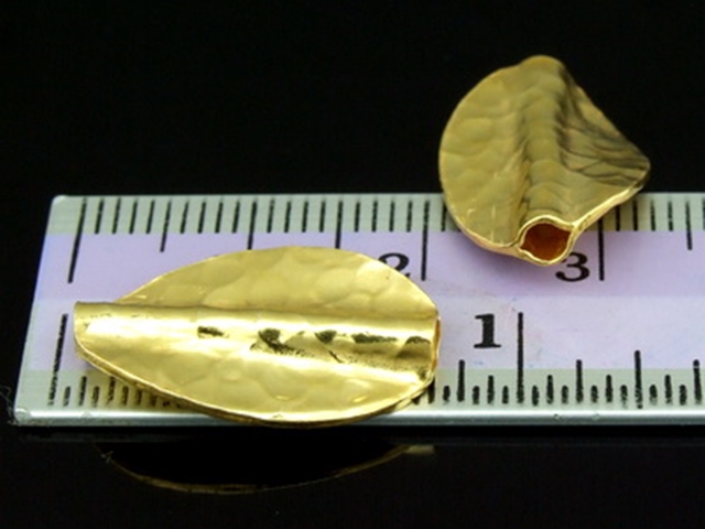 KG-386 24K Gold vermeil 2 thai karen hill tribes silver hammered twist leaf bead