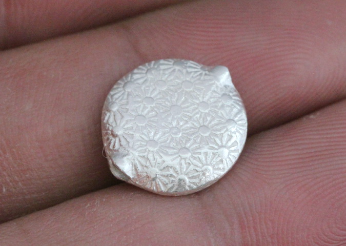 KF-017 Thai karen hill tribe handmade silver 4 daisy print fancy puffy bead
