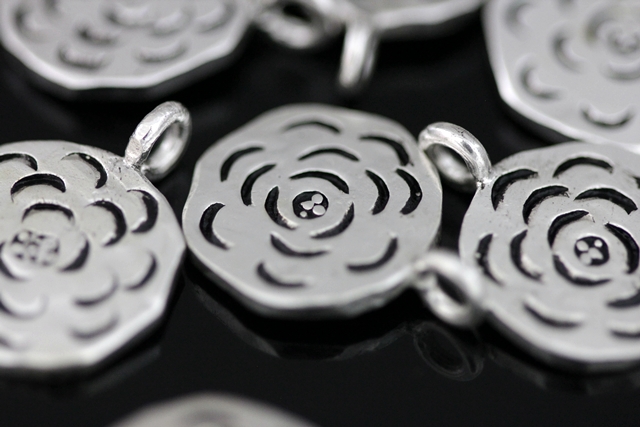 4KH-055 Thai karen hill tribe handmade silver 2 Tracery flower disc charm