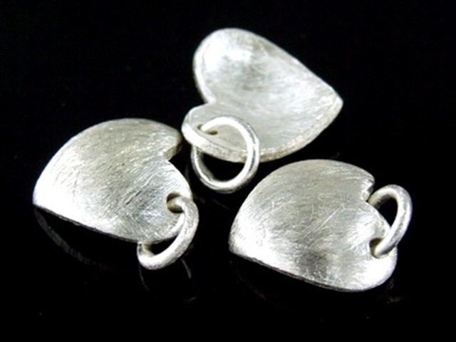 7KH-029 Thai karen hill tribe handmade silver 3 brush curved heart diecut charm