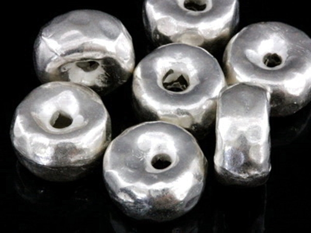 KV-034 Thai karen hill tribe silver 2 hammered wheel shape bead