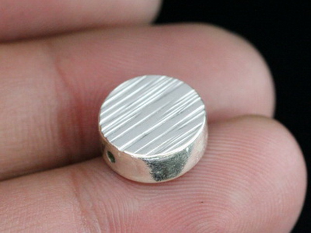 KV-055 Thai karen hill tribe handmade silver 3 line hammered scratch cylinder round shaped bead