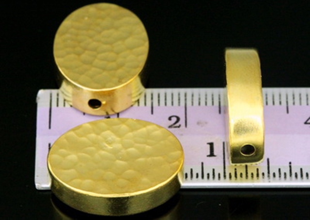 KG-041 Thai karen hill tribe silver 2 gold vermeil hammered cylinder oval shaped bead