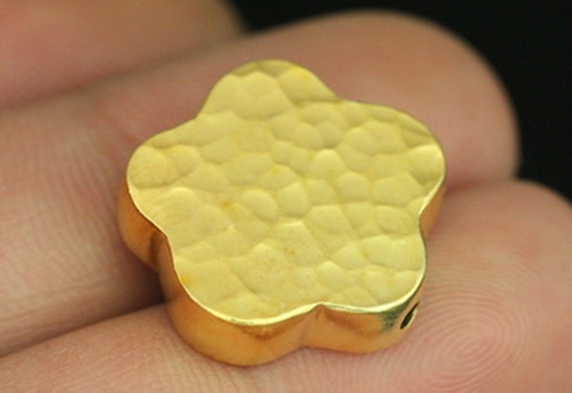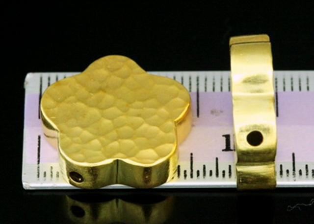 KG-080 Thai karen hill tribe silver 1 gold vermeil hammered cylinder flower shaped bead
