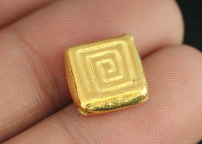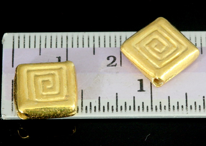 KG-105 Thai karen hill tribe silver 2 gold vermeil line printed square bead