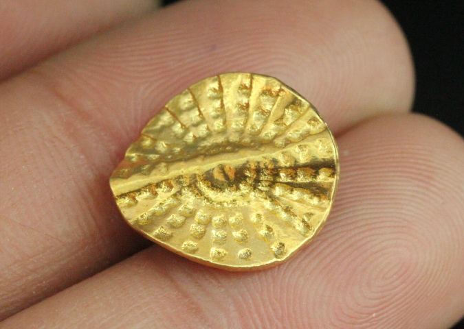 KG-108 Thai karen hill tribe handmade silver 2 gold vermeil hammered round disc bead