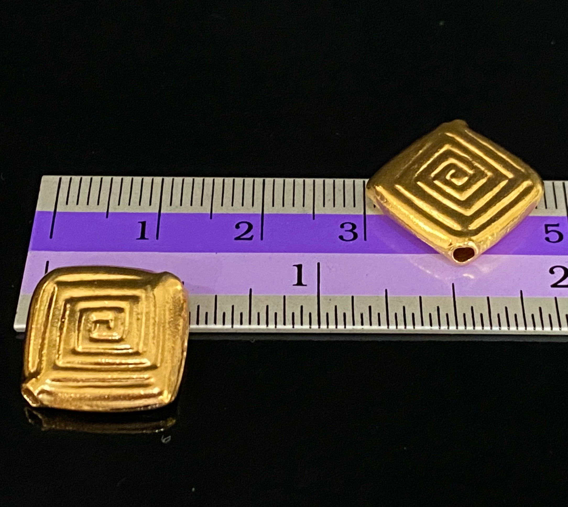 KG-142 Thai karen hill tribe silver 2 gold vermeil medium line printed square bead