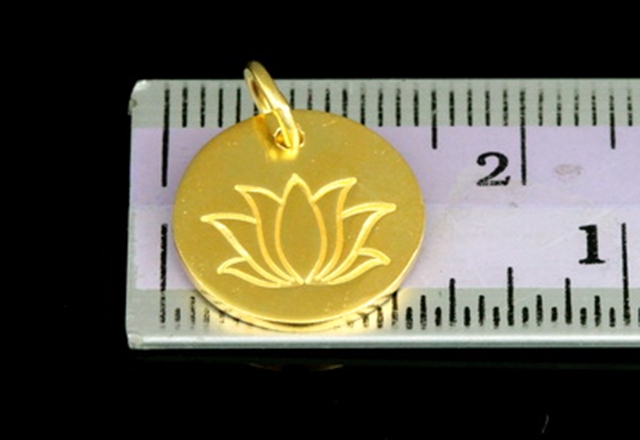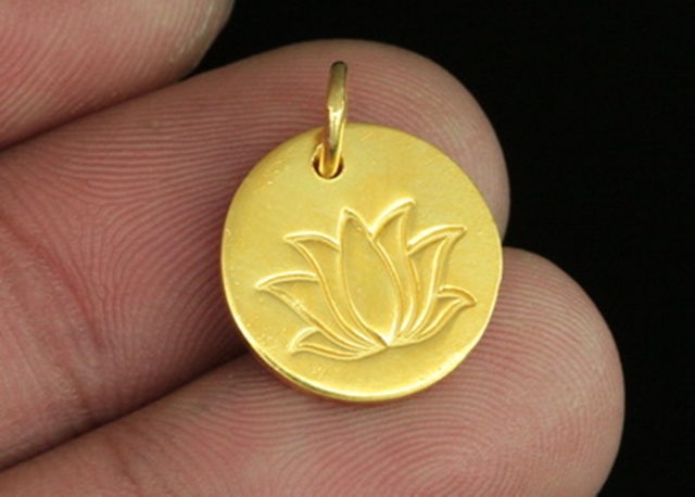 KG-527 Thai karen hill tribe handmade silver 2 gold vermeil printed lotus disc charm