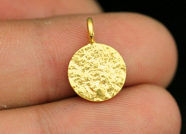KG-550 Thai karen hill tribe silver 6 gold vermeil small rough stone texture charm