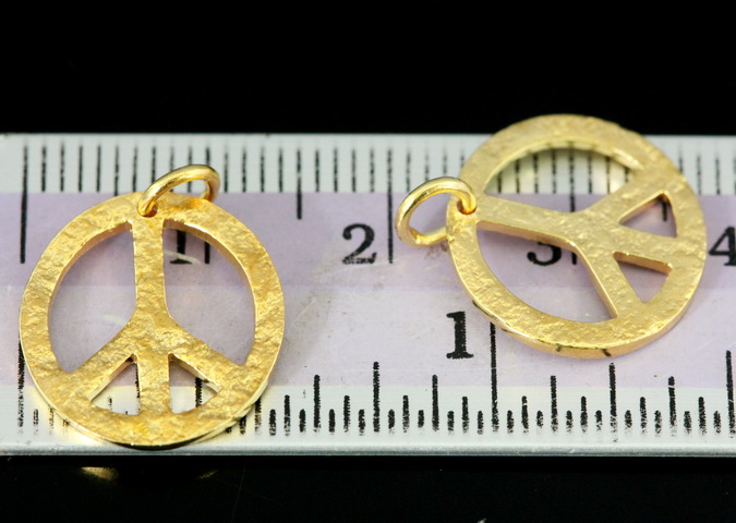 KG-554 Thai karen hill tribes handmade silver 4 gold vermeil rough stone texture peace sign charm