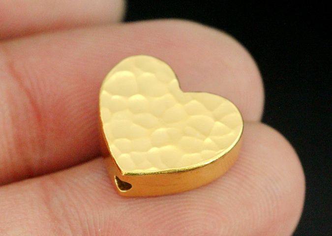 KG-565 Thai karen hill tribe silver 2 gold vermeil hammered cylinder heart shaped bead