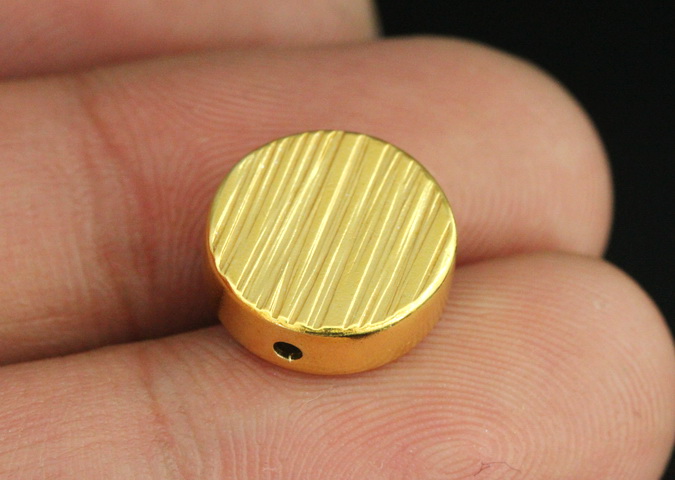 KG-567 Thai karen hill tribe silver 2 gold vermeil line hammered scratch cylinder round shaped bead