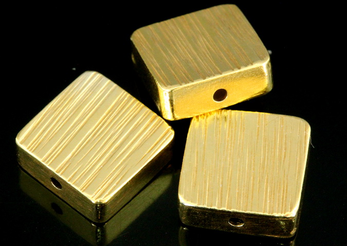 KG-568 Thai karen hill tribe silver 2 gold vermeil line hammered scratch cylinder square shaped bead
